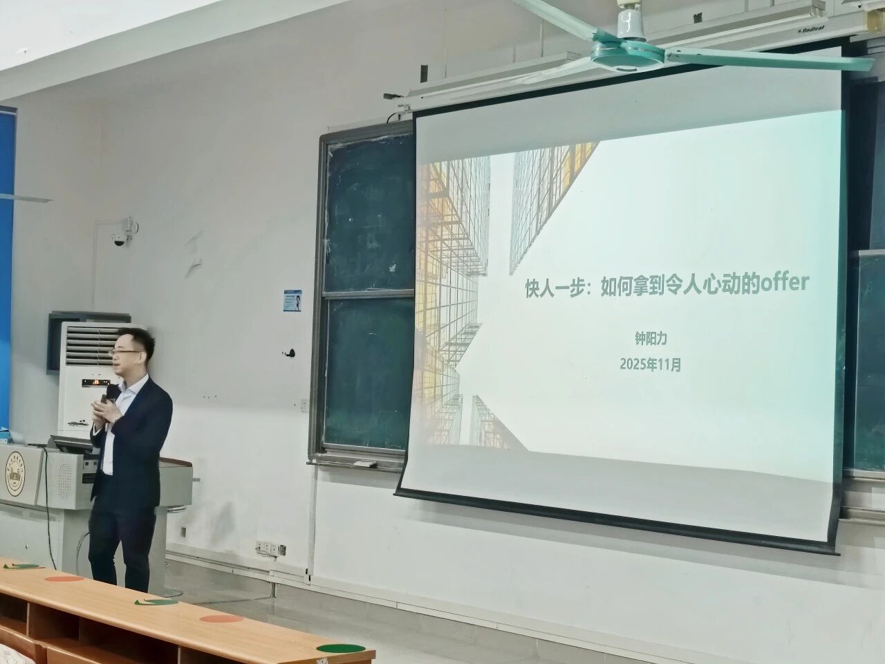 论坛上,钟阳力围绕求职话题与同学们展开深度交流,以《快人一步——如何拿到令人心动的offer》为主题分享实战经验,围绕简历制作、面试技巧、求职疑难等同学们关心的问题,传递求职面试“真经”。现场座无虚席,同学们专注聆听,不时提出疑问,互动氛围浓厚。